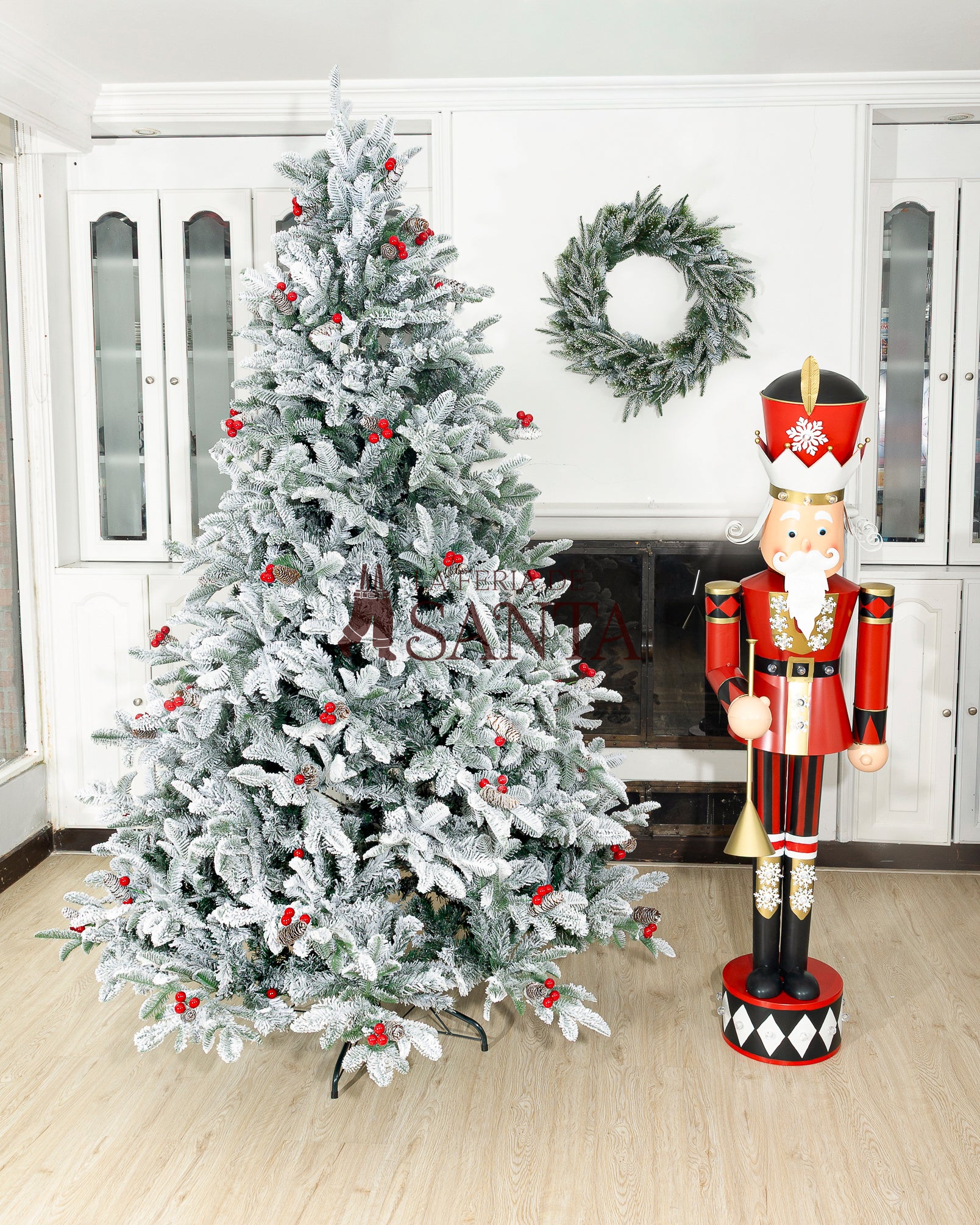 Material: Estructura metálica con ramas plásticas nevadas.