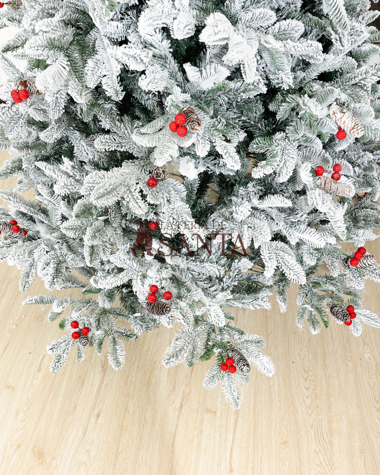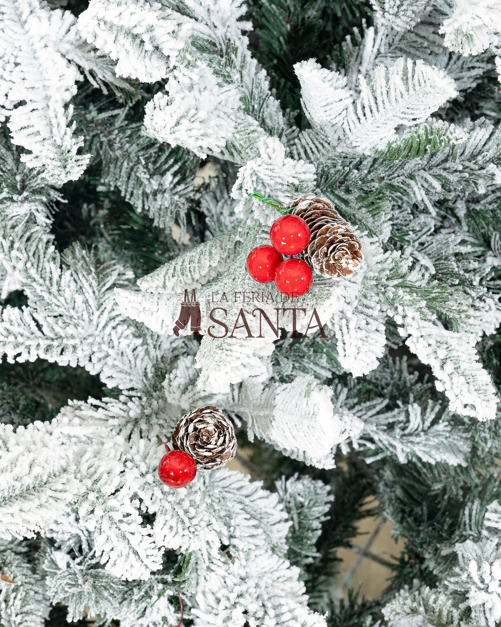 Tipo de árbol: Nevado, piñas y hermosas Cerezas que resaltan.