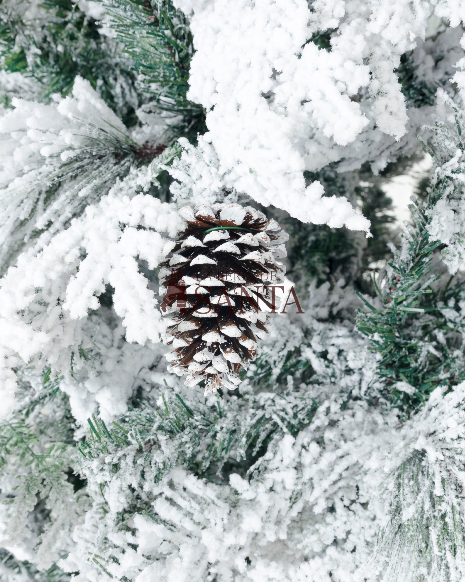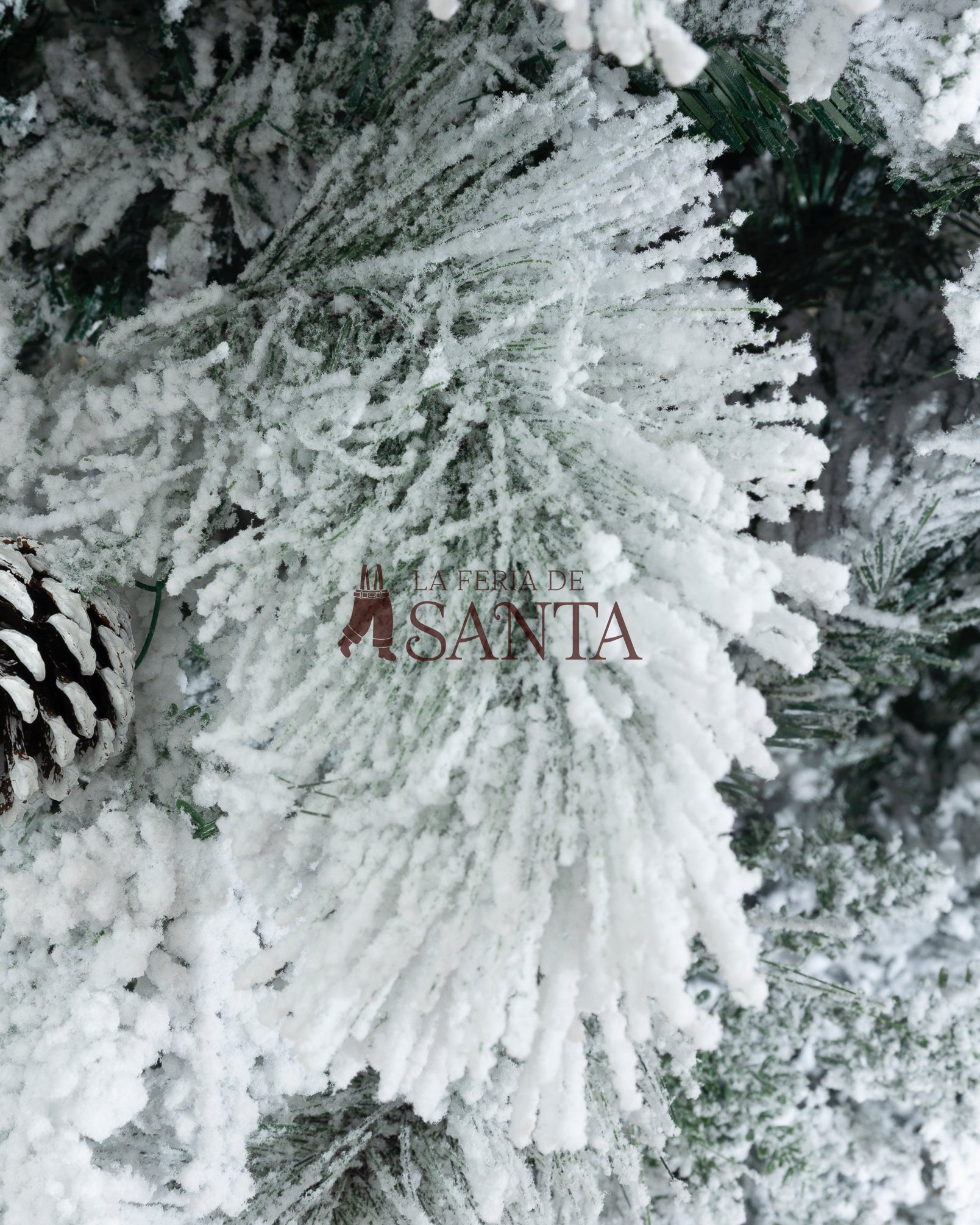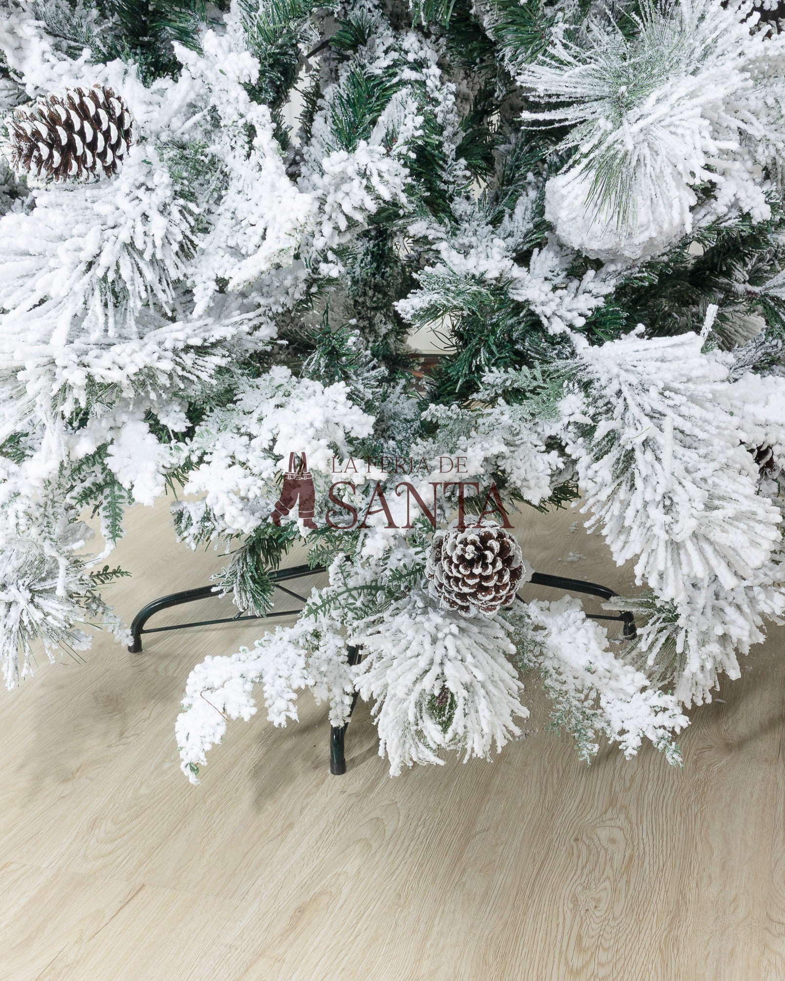 Tipo de árbol: Nevado con distintos tipos de ramas, piñas.