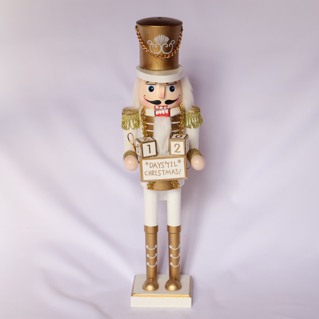 Un clásico navideño con un toque de elegancia. Está elaborado en madera, con acabados dorados y detalles brillantes que realzan cualquier espacio. Ideal para colocar junto al árbol, en la mesa o en una repisa.