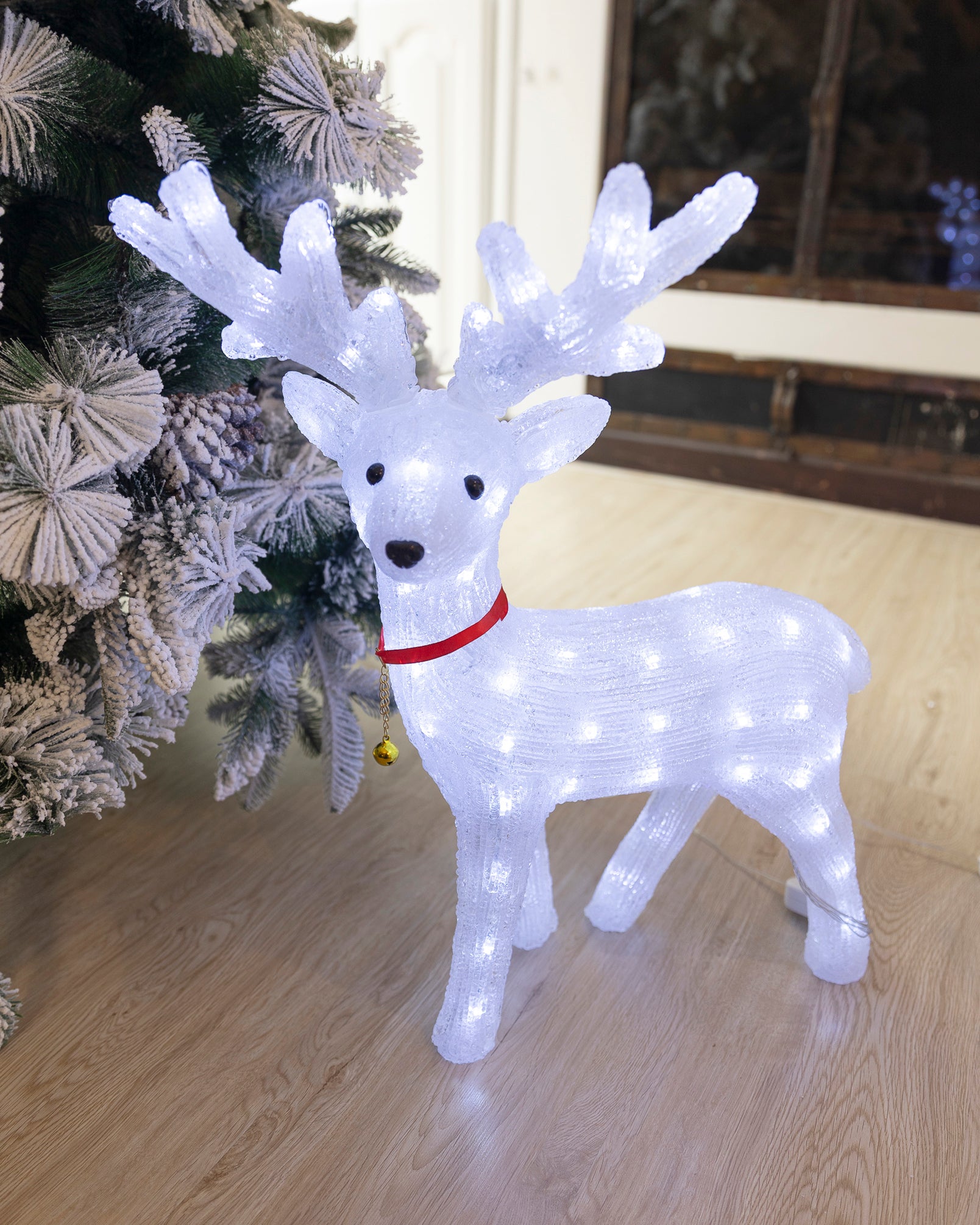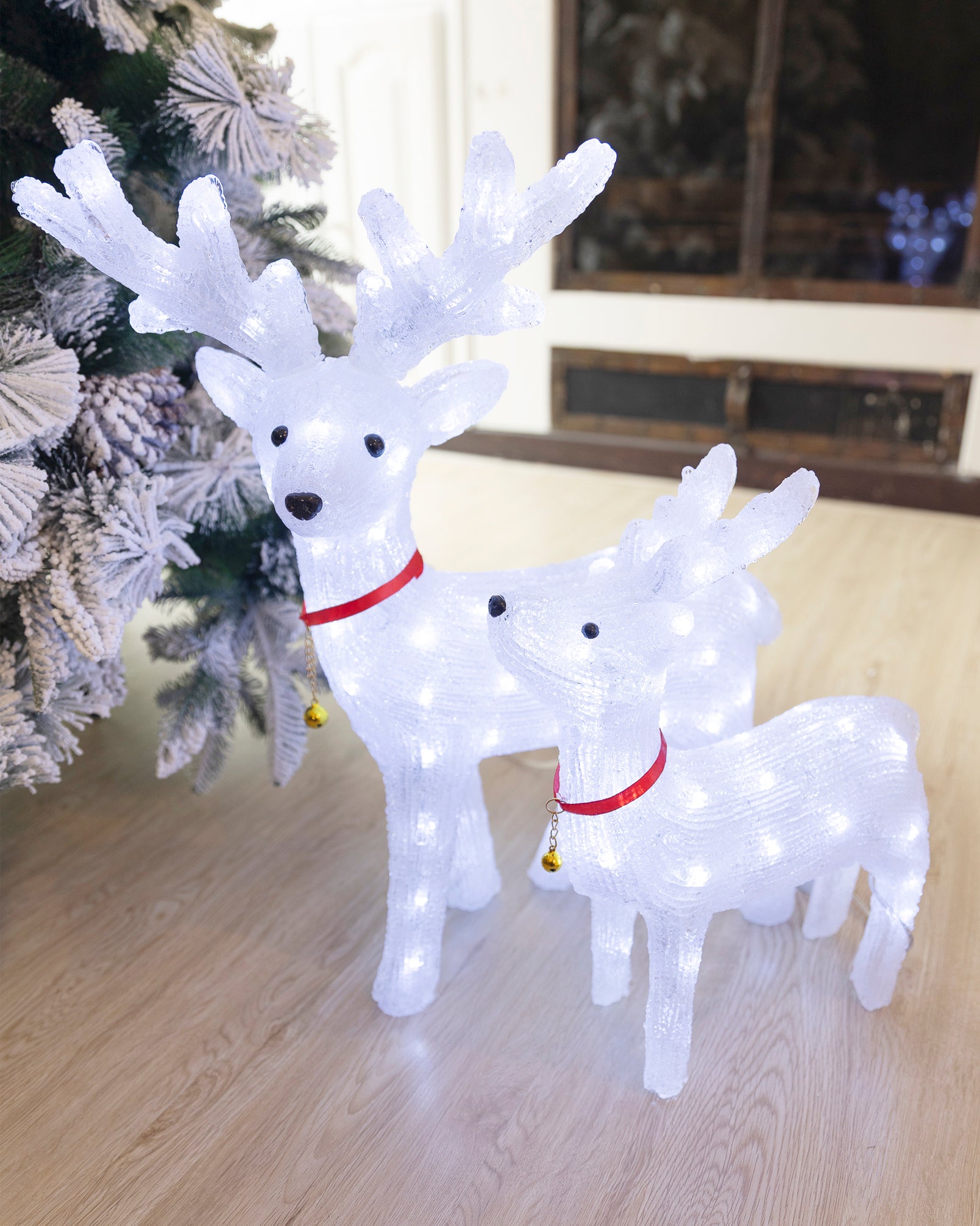 Ilumina tu Navidad con elegancia: estos renos translúcidos con LEDs integrados crean una atmósfera mágica y moderna. Su silueta cristalina y la luz blanca tenue resaltan junto al árbol o en un rincón decorado, aportando calidez sin perder la sofisticación.
